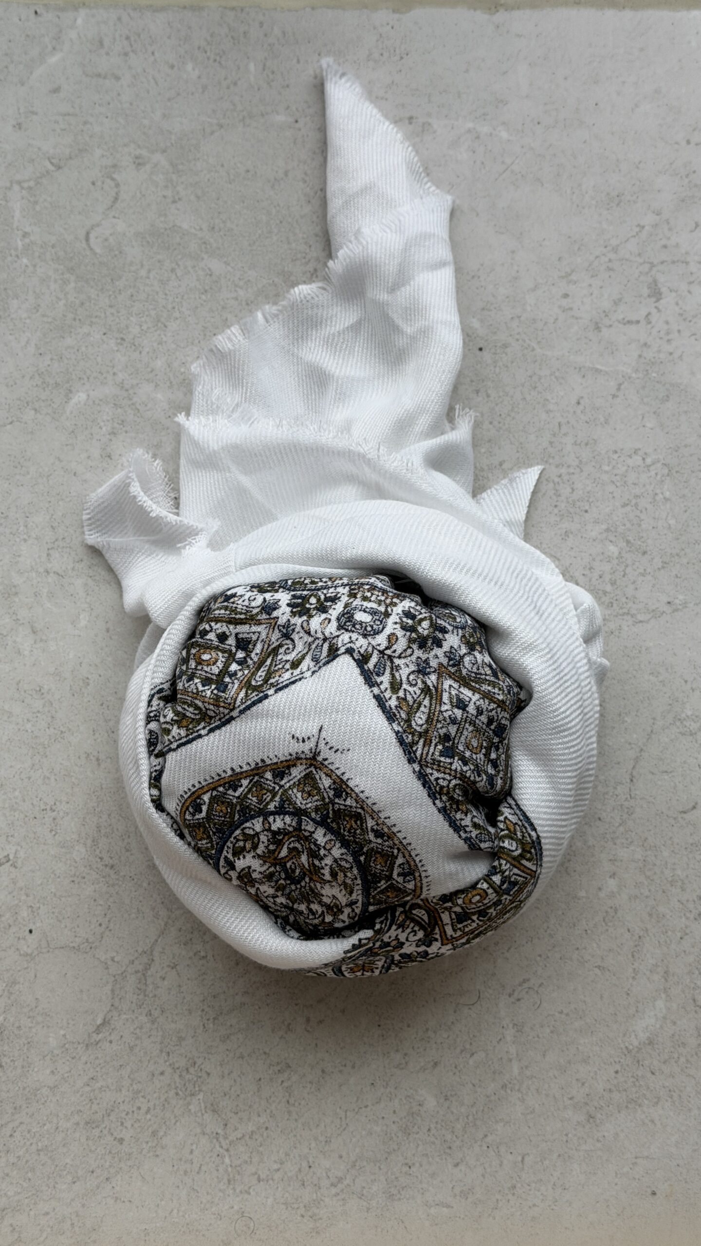 This a cashmere shawl print and in the Emirati style. To determine your child’s correct size, please measure their head circumference in inches. If measuring in centimeters, multiply that measurement by 2.54 to get the correct size in inches.