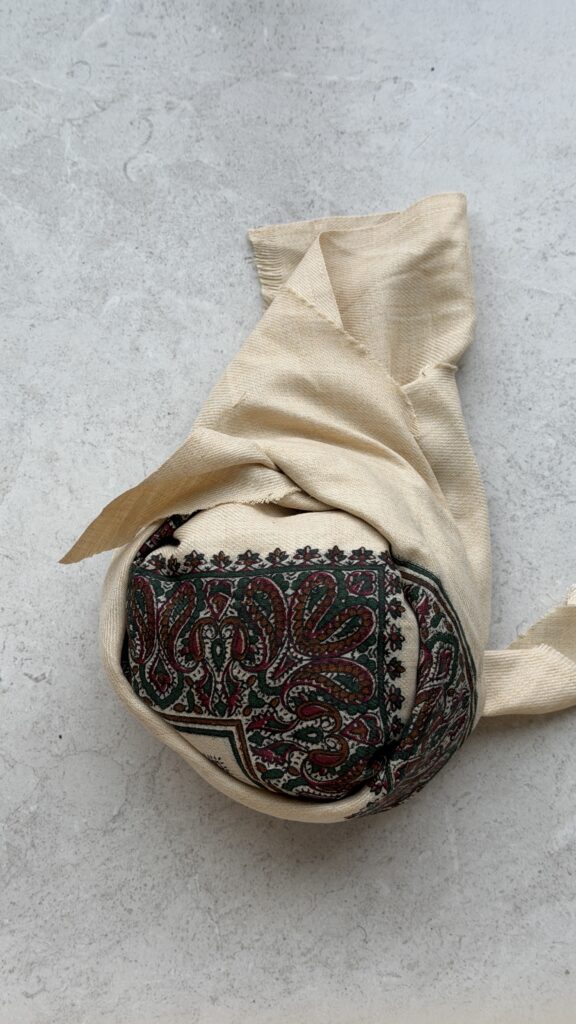 This a cashmere shawl print and in the Emirati style. To determine your child’s correct size, please measure their head circumference in inches. If measuring in centimeters, multiply that measurement by 2.54 to get the correct size in inches.